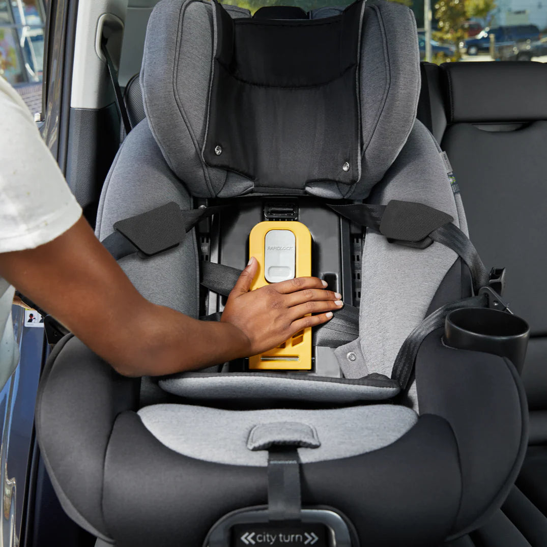 - Rapidlock™ base belt tensioning technology and integrated push button latch for simple, secure installation in seconds