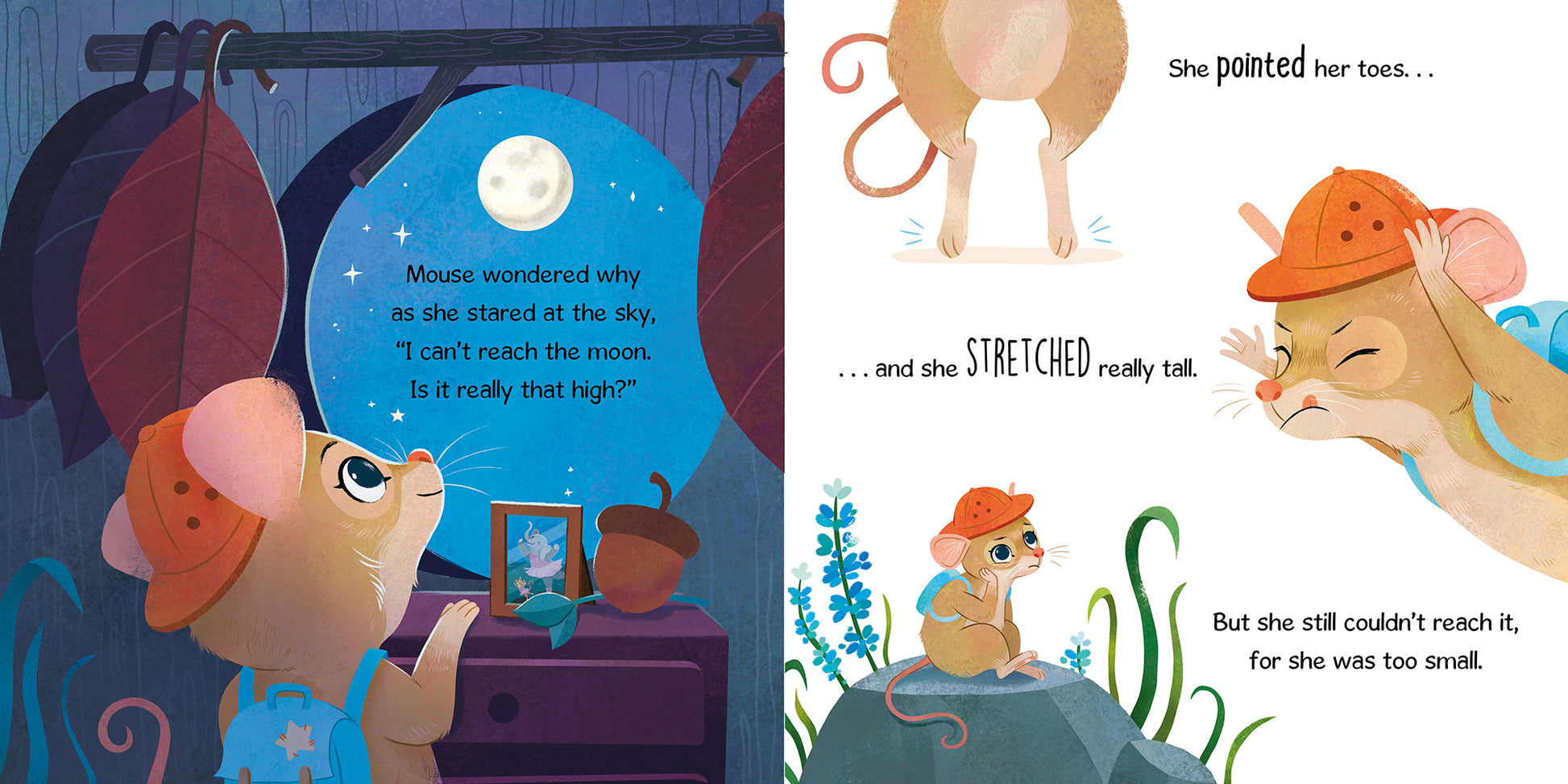 Mouse is a little creature with big dreams. Read along to join her adventure as she tries to reach new heights with help from her friends. This wonderful, heartwarming book is perfect for a sweet story time.