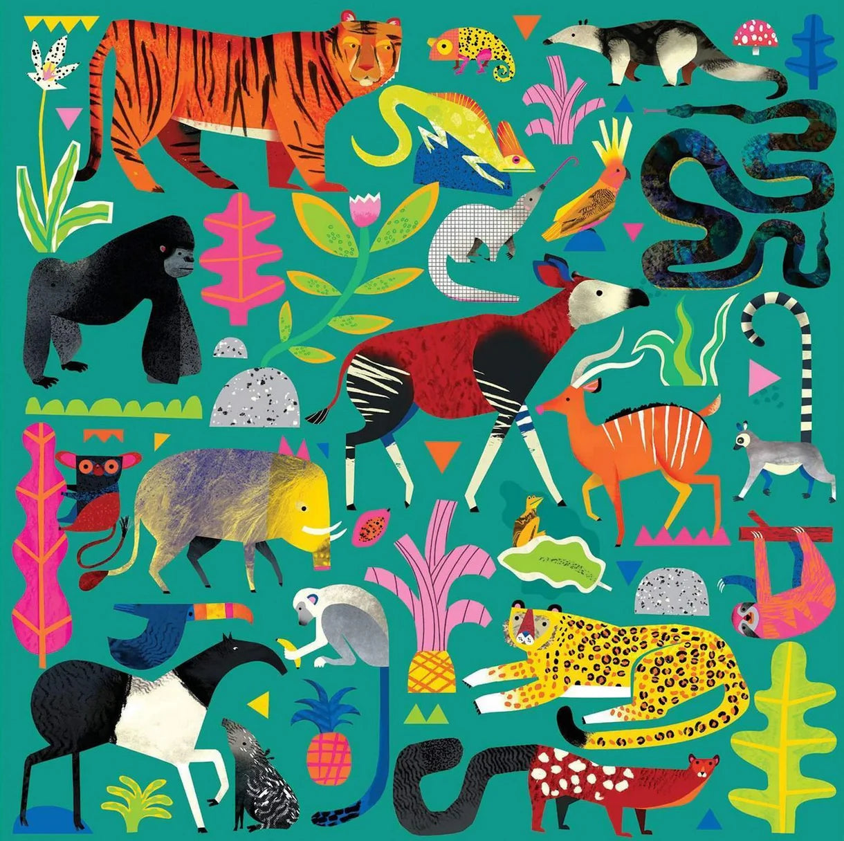 Features a colourful assortment of animals from the rainforest, including a gorilla, toucan, and a sloth. Mudpuppy puzzles are packaged in matte-finish sturdy boxes, perfect for gifting, reuse, and storage.