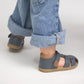 Theo features contrast detailing and heavy-weight stitching on the straps. An adjustable top strap, supportive padded heel, and closed toe make this podiatrist-approved summer sandal perfect for protecting growing feet.